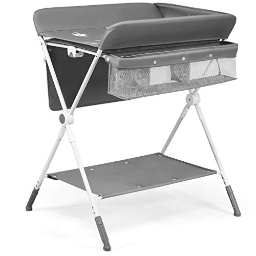 ★Design Pieghevole e Installazione Facile★ Il telaio è costruito in tubi grossi di ferro robusto che garantisce un'alta robustezza e stabilità. La base è pieghevole in una forma sottile per risparmiare spazio ed è facile da aprire e utilizzare con e senza il fasciatoio, che richiede soltanto l'inserimento del pannello.
