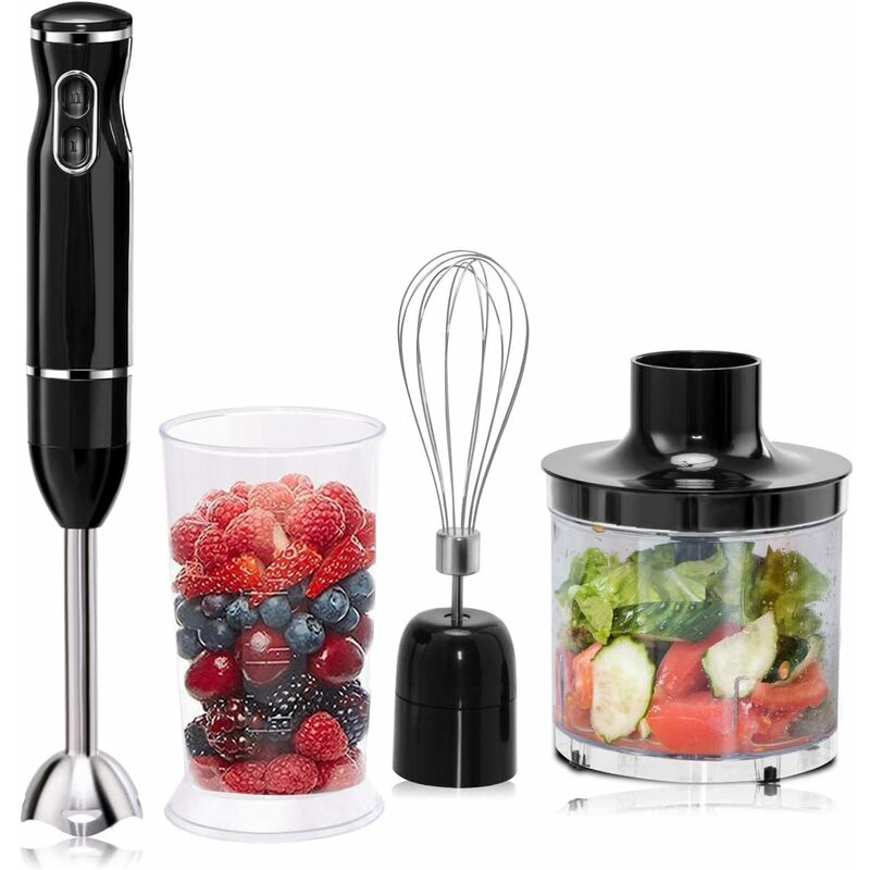 Buoni materiali e lunga durata ★ Il frullatore a immersione è realizzato principalmente in ABS di alta qualità e acciaio inossidabile, che ha una buona durata. La lama affilata in acciaio inossidabile consente un taglio facile e veloce. Inoltre, il frullatore a immersione offre un alto livello di sicurezza. ★ Set 5 e 1 e due velocità ★ Il set frullatore a immersione contiene un bicchiere graduato da 700 ml, un minitritatutto da 500 ml con coperchio, una frusta, lama per impastare e lama per tritare con cui puoi preparare molti ingredienti. Due velocità regolabili possono trovare la giusta velocità per ogni attività di miscelazione. ★ Aiuto in cucina multifunzionale e ideale ★ Il frullatore a immersione è adatto per tagliare, mescolare e schiumare vari ingredienti. Con il frullatore a immersione puoi trasformare carne, verdura, frutta e persino alcune noci in carne macinata, purea, salsa, ecc. Il cavo di alimentazione lungo 105 metri offre una portata più flessibile. Il frullatore a