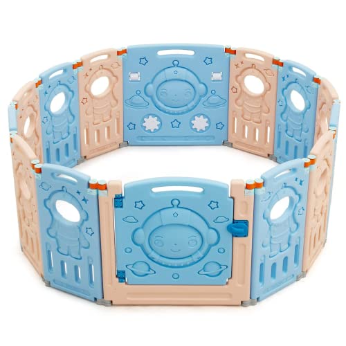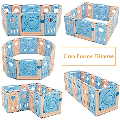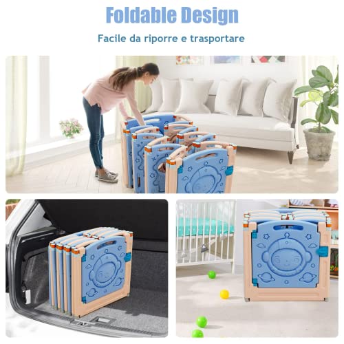 RELAX4LIFE Box Pieghevole per Bambini, Recinto con 12/14/16 Pannelli dai 6 Mesi ai 3 Anni,con Base Antiscivolo, per Interni/Esterni (14 Pannelli, Astronauta)