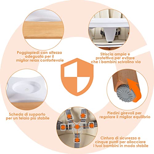 ★Cuscino Imbottito con Cintura di Sicurezza★ Il nostro seggiolone pappa evolutivo fornisce un cuscino rimovibile ed è imbottito in spugna con il rivestimento liscio al tatto delicato. Grazie al design accurato, c'è la cintura a 5 punti per garantire la massima sicurezza durante l'uso, così offre una seduta confortevole e sicura.