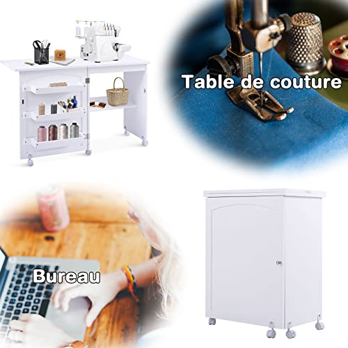 RELAX4LIFE - Tavolo pieghevole per macchina da cucire con 4 ripiani, armadio da macchina da cucire con ruote con freni, tavolo pieghevole in MDF, 117 x 40 x 77 cm, bianco/naturale/marrone (bianco)