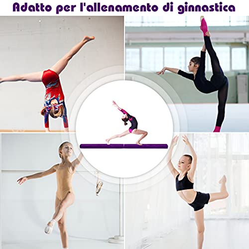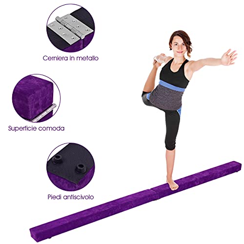 RELAX4LIFE Trave da Ginnastica Pieghevole 210 cm, Trave di Equilibrio per Palestra e Casa con Base Antiscivolo, Cerniere e Schiuma, Allenamento Fitness per Bambini e Adulti (Viola)