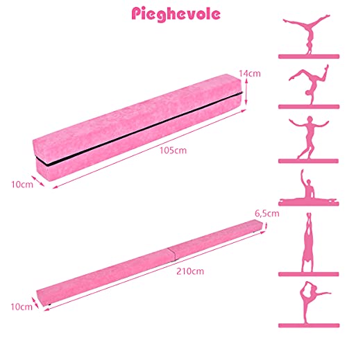 RELAX4LIFE Trave da Ginnastica Pieghevole 210 cm, Trave di Equilibrio per Palestra e Casa con Base Antiscivolo, Cerniere e Schiuma, Allenamento Fitness per Bambini e Adulti(Rosa)