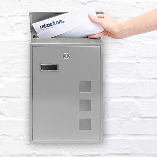 Relaxdays 10017417_55 Cassetta Postale, Laccata, Targhetta per Nome, Accessorio Moderno Monocolore 25 x 40 cm, Esterno, Argento, 1 pz