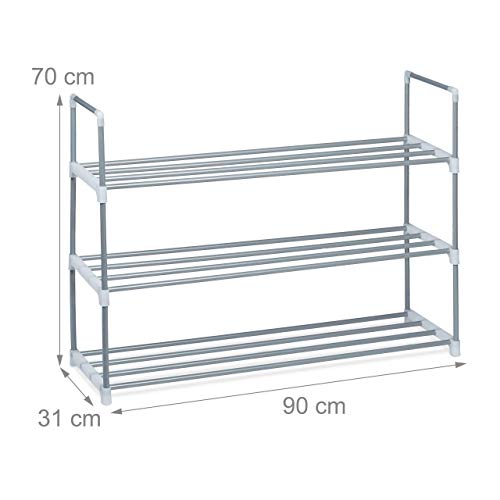 Relaxdays 10020501_348 Scarpiera, Argento, 31x90x70 cm, metallo, 16 pairs