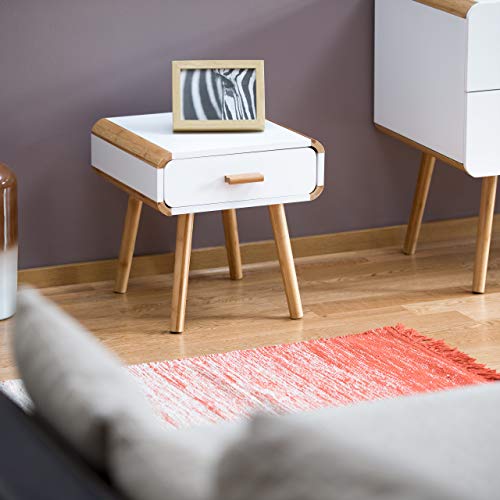 Relaxdays 10020976 Comodino a 1 Cassetto Mobiletto in Legno Cassettiera Camera da Letto Salvaspazio HxLxP: 41 x 40 x 40 cm Bianco