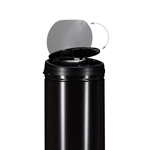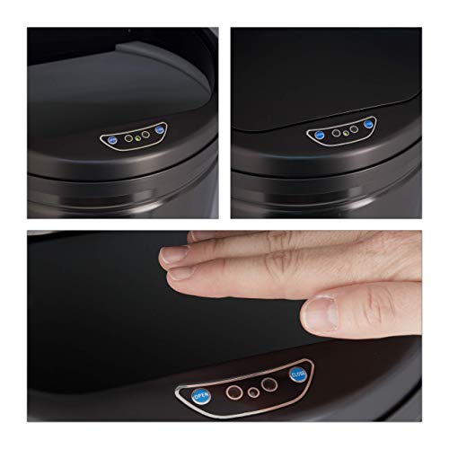 Relaxdays 10021226 Pattumiera 50 L, con Sensore, Coperchio Automatico, in Acciaio, Altezza 80 cm, Diametro 30 cm, Nero, trasparente, plastica