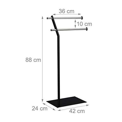 Relaxdays 10021740 Portasciugamani da Terra Cromato, Design raffinato, Due Bracci, HxLxP: 88 x 42 x 24 cm, Nero