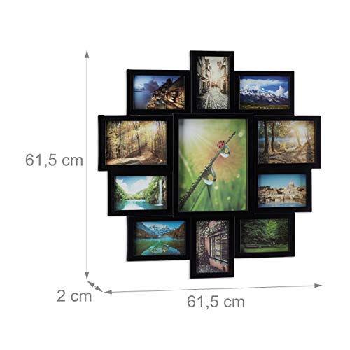 Relaxdays 10021953_46 Cornice per 11 Foto, Porta-fotografie Multiplo, Collage Multifoto da Appendere, a Più Foto, Nero, plastica