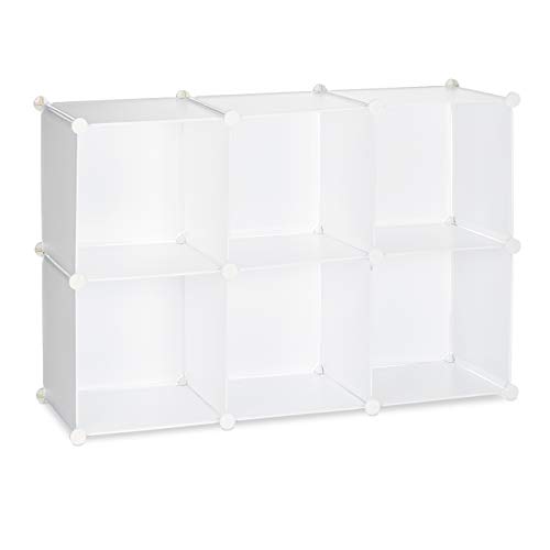 Relaxdays 10021958_49 Scaffale Componibile, 6 Scomparti, Sistema a Incastro, Plastica, HxLxP: 65 x 96 x 32 cm, Bianco