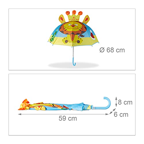 Relaxdays 10022286_764 Ombrello per Bambini con Leone 3D, Parapioggia per Bimba Bimbo, Bastone Ombrellino Piccolo da 14 anni