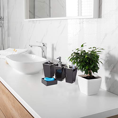 Relaxdays 10022585_46 Accessori Bagno Bbicchiere Igiene Dentale Portaspazzolini Dispenser Sapone Portasaponetta Scatola Nero