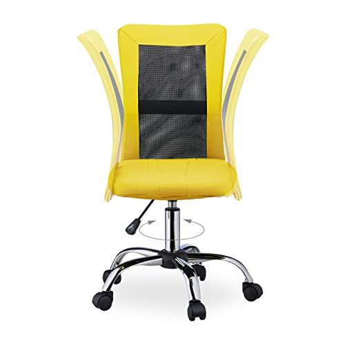 Relaxdays 10022882_48 Sedia da Ufficio, Regolabile in Altezza, Seggiola per Bambini, Fino a 90 kg, HLP 102 x 55 x 55 cm, Gialla, Tela, 1 Pezzo