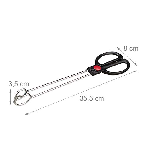 Relaxdays 10022934 - Pinze per barbecue, adatte per alimenti, per girare e servire, manici ergonomici, in ferro, PP, lunghezza 35 cm, colore: argento/nero
