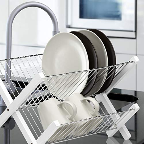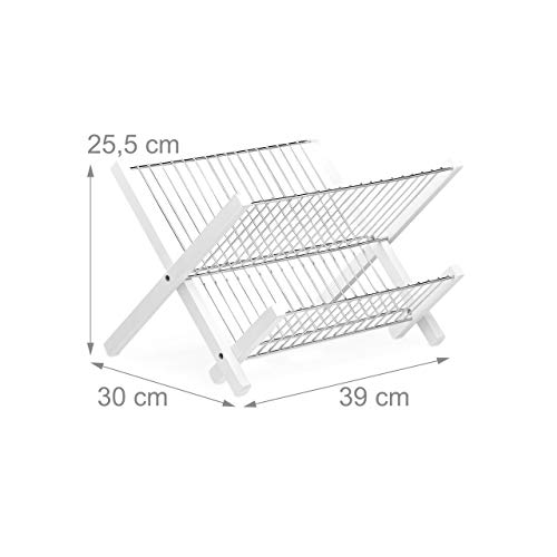 Relaxdays 10023256 Scolapiatti da Appoggio Acciaio Inox, 2 Ripiani, Richiudibile, Salvaspazio, HLP: 25,5 X 39 X 30 cm, Bianco