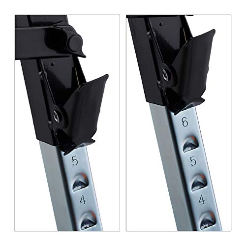 Relaxdays 10026077 Cavalletto da Lavoro, Set da 2, Pieghevole, Max. 250kg, 12 Altezze Regolabili 64-91,5cm, Nero-Arancione