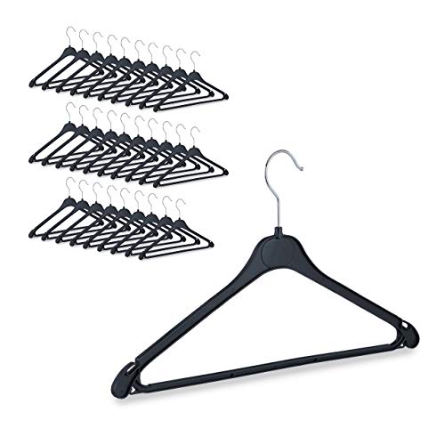 Relaxdays 10026612_1004 Grucce Appendiabiti, Asta per i Pantaloni, Camicie, Gonne, Gancio Girevole, Plastica, Set da 30, Nero, Metallo, 23,00 x 42,50 x 0,70cm