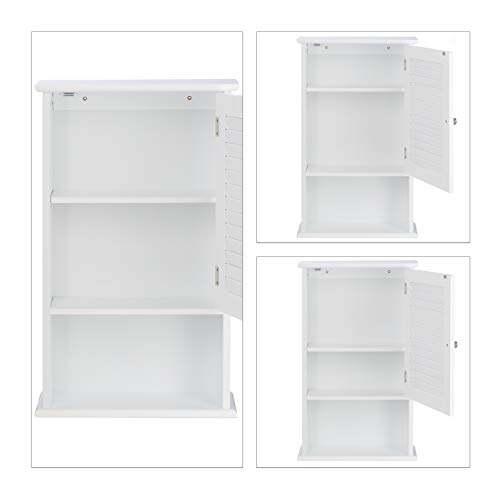 Relaxdays 10032188 Pensile Bagno, Mobiletto da Parete Salvaspazio, 3 Scomparti, Porta a Lamelle, Multiuso, Legno, Bianco, 1 pz