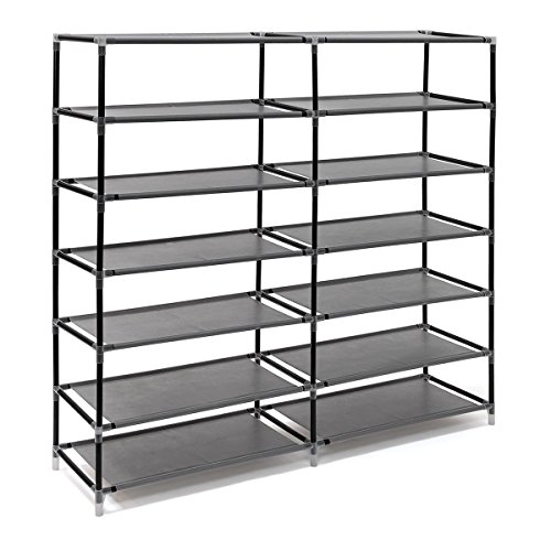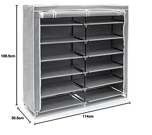 Relaxdays Ampia Scarpiera Collezione Valentin con 7 Ripiani Hxbxt: 108.5 X 114 X 30.5, Fino a 36 Paia di Scarpe, antracite, metallo, 36 pairs