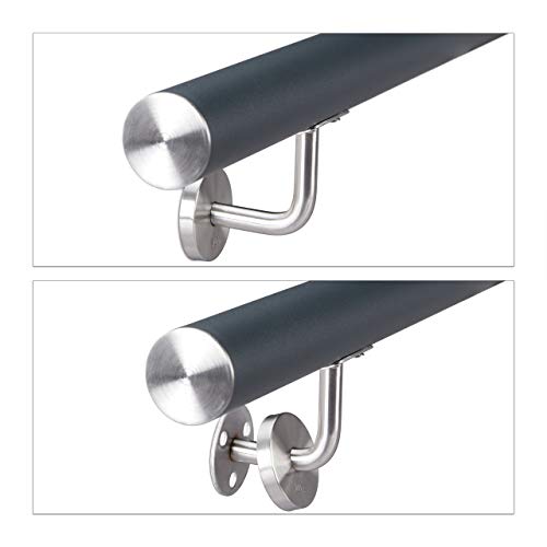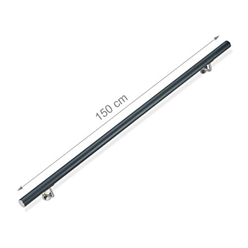 Relaxdays Antracite Corrimano Rotondo in Alluminio, Passamano per Interni o Esterni, Opaco, 150 cm, Diametro 42 mm, Acciaio Inox, 12 x 150 x 8 cm