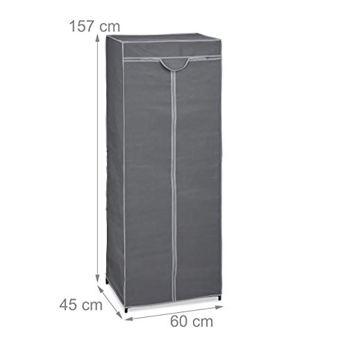 Relaxdays Armadio in Tessuto con Asta Appendiabiti e 1 Ripiano, 157x60x45 cm, Guardaroba in Stoffa con Zip, Antracite, 107x115x30 cm