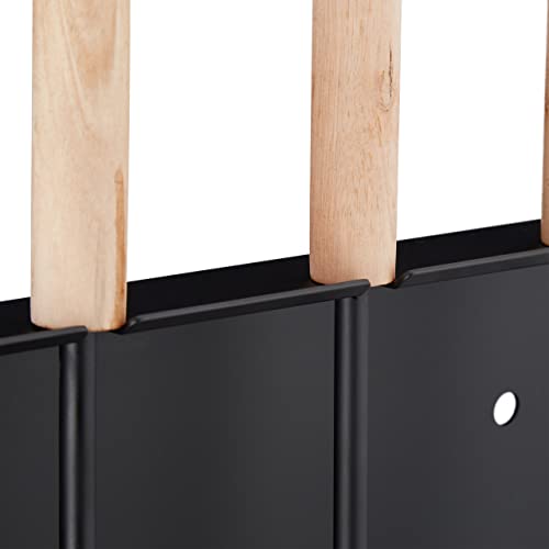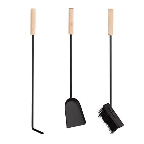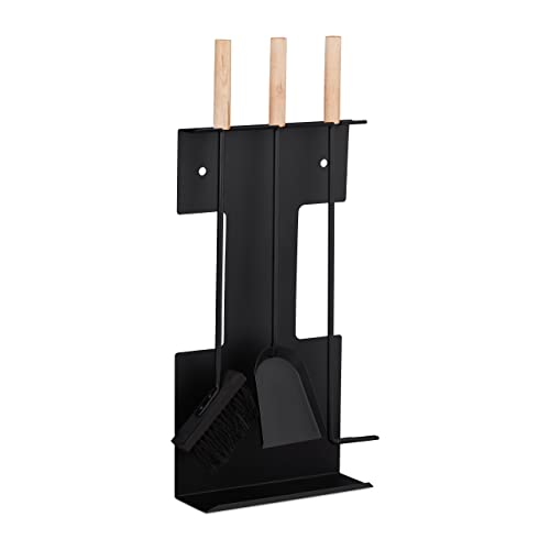 Relaxdays Set Attrezzi da Camino, 4 Accessori, Attizzatoio, Paletta, Scopino, HPL 66x28x11cm, Portautensili, Nero Natura, Acciaio, Legno, 66 x 28 x 11 cm