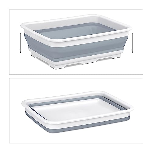 Relaxdays Bacinella Pieghevole, Catino Rettangolare da 7 l, da Picnic e Campeggio, HLP: 12 x 37 x 27 cm, Bianco Grigio