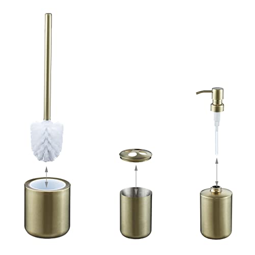 Relaxdays Bagno Completo 5 Accessori, Kit WC Acciaio Inox Spazzolato, Portaspazzolino, Sapone e Saponetta, Oro, Set da 5 pz