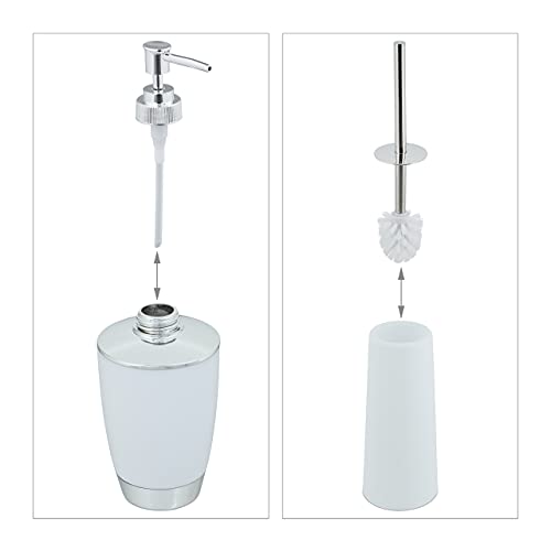 Relaxdays Bagno Completo, 6 Accessori, Plastica, Kit WC, Porta-Spazzolino, Dentifricio, Sapone e Saponetta, Bianco, 0% Acciaio Inox, Set da 6