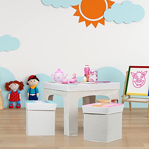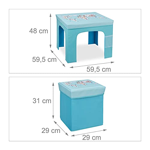 Relaxdays Bambini, Sgabelli Portaoggetti Pieghevoli, Tavolo Basso Cameretta Mappamondo, Azzurro, Set 1x tavolino + 2X sedie