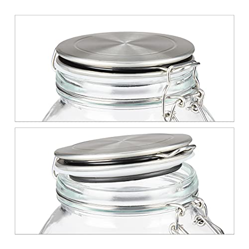 Relaxdays Barattoli per Alimenti, Set da 3, Contenitori in Vetro Ermetici, per Conserve, 500, 1000, 3000 ml, Trasparente