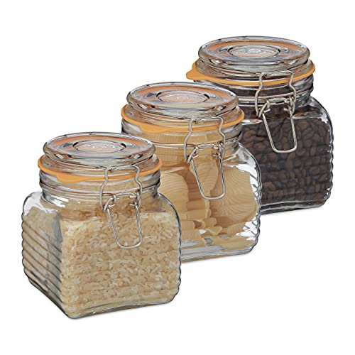 Relaxdays Set da 3 Barattoli per Alimenti, Coperchio Ermetico, in Vetro, Volume 750 ml, Anche per Conserve, Trasparente, Silicone, Acciaio Inox, 3 pz