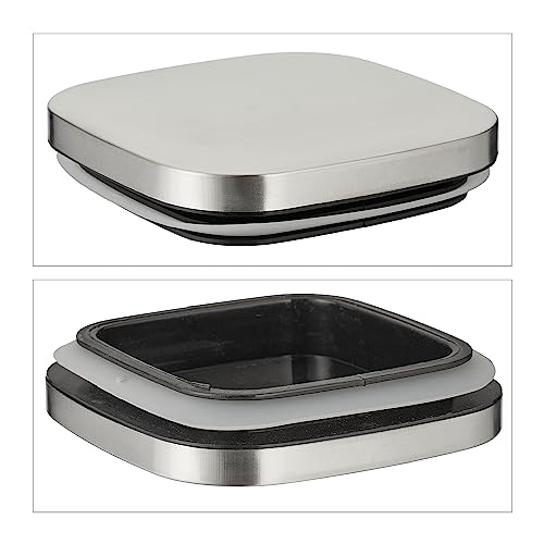 Relaxdays Set 3 Barattoli in Vetro con Coperchio in Acciaio, Contenitori per Cucina, da 600 ml, Trasparente Argentato, 70% 20% Inox 10% Silicone, 11 x 10.5 x 10.5 cm