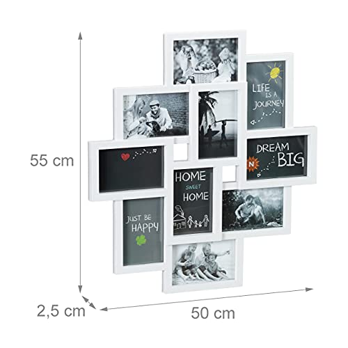 Relaxdays, Bianco Cornice per 10 Foto, in Formato Verticale o Orizzontale, da Parete, in Plastica, HxL 55x50 cm, HxLxP: 55x50x2,5 cm