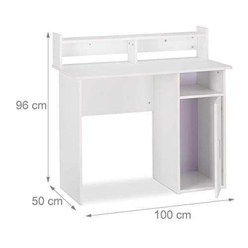 Relaxdays, bianco Scrivania con Armadietto Laterale & Ripiani, Salvaspazio, Tavolo da Ufficio, HLP 96x100x50cm, Truciolato, 96 x 100 x 50 cm