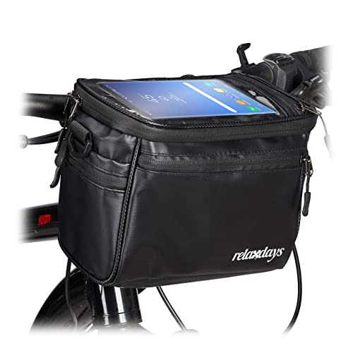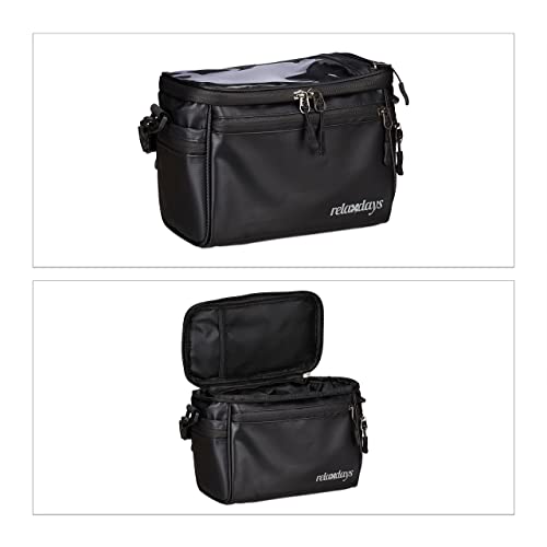 Relaxdays Borsa da Manubrio per Bicicletta, Impermeabile, Portaoggetti e Porta Cellulare Fino a 6,7”, con Tracolla, Nero, 80% Nylon 10% plastica, 18 x 28 x 15 cm