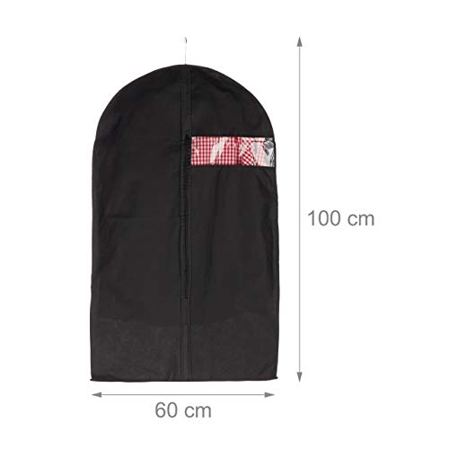 Relaxdays 3X Borse Borsa Porta Abiti, Set da 3, 100x60 cm, Custodia per Completi, Vestiti, Traspirante, per Giacche & Co, Nera, Vello, plastica, Nero