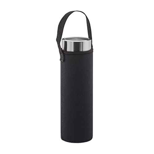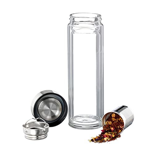 Relaxdays Bottiglia con Infusore,500 ml,Borraccia Portatile,Custodia Neoprene,Tea Infuser,Vetro Borosilicato,Trasparente
