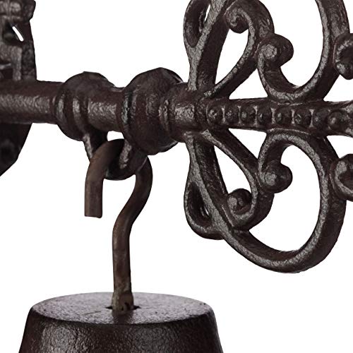 Relaxdays Campanella per Porta in Ghisa, Chiave e Lucchetto, Fascino Retro, Casa e Giardino Stile Rustico, Rosso Scuro