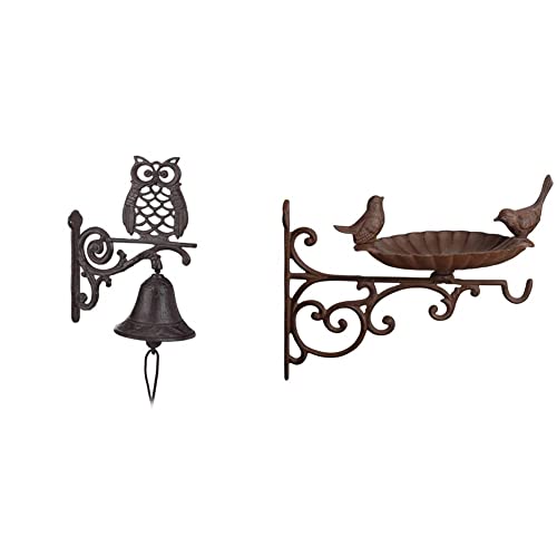 Relaxdays Campanella per Porta con Gufo in Ghisa, Stile Rustico, Antico, Uccello, Cordicella, Resistente, Marrone Scuro & Esschert Design FB163 Mangiatoia per Uccelli, Metallo