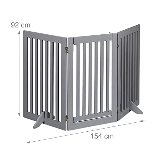 Relaxdays Cancelletto per Bambini, Barriera per Cani e Neonati, 3 Pannelli, Recinzione per Scale, MDF, 92x154 cm, Grigio, 100% Fibra
