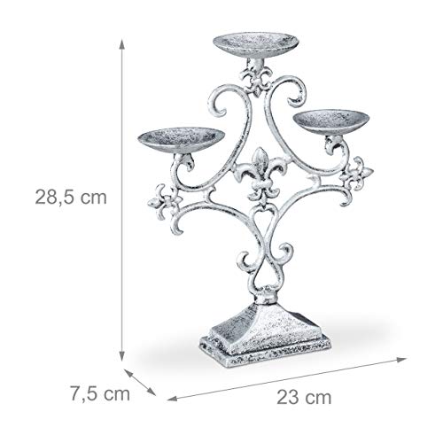 Relaxdays Candeliere, a 3 Bracci, Portacandele Vintage, per Candele, in Ghisa, Misure HxLxP: 28,5 x 23 x 7,5 cm, Argento