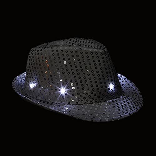 Scintillante: cappello Fedora con paillettes sfavillanti e luci a LED - in argento luminoso