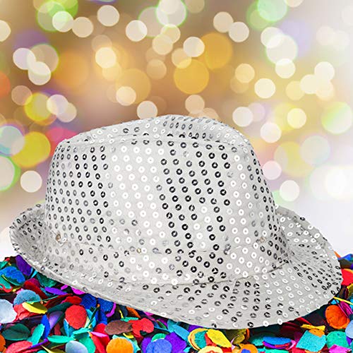 Relaxdays- Cappello da Festa con Paillettes, 6 Luci a LED, Glitter, da Uomo e Donna per Adulti, Argento, 10023897_55