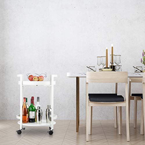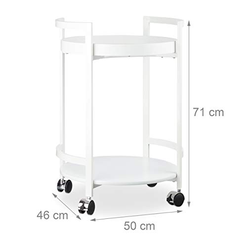 Relaxdays Carrellino da Servizio, Carrello da Portata, da Bar, Rotondo, 2 Ripiani, con Vassoio, Legno curvato, Bianco, 71 x 50 x 46 cm