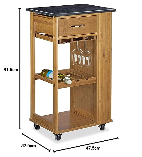 Relaxdays Carrello da Cucina Alfred con Portabicchieri e Cantina, Arredo Multiuso con Ruote e Cantinetta, bambù Naturale, Legno, Marrone, 81.5x47.5x37.5 cm