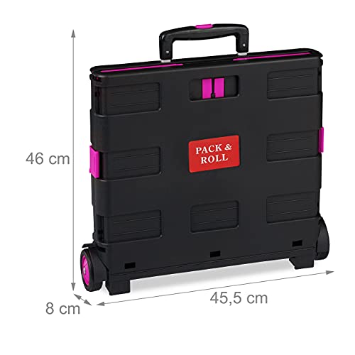 Relaxdays Carrello Portaspesa Pieghevole,Manico Telescopico,2 Ruote Gomma,fino a 35 kg,Trolley Spesa, Alluminio, Rosa