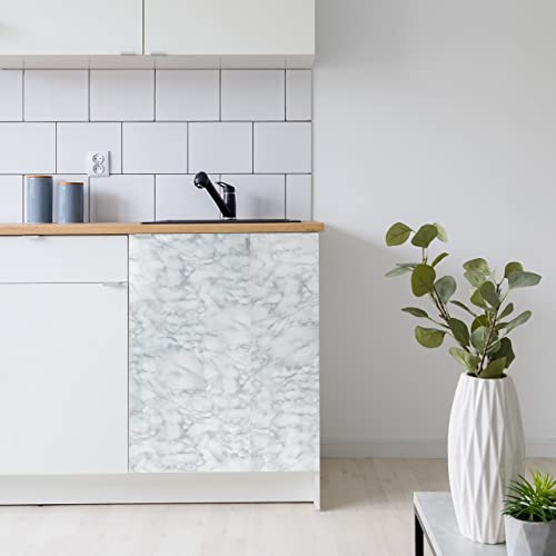 Relaxdays Carta da Parati, DIY, Restauro, Mobili e Cucina, Pellicola Autoadesiva, Effetto Marmo, PVC, 45x200 cm, Bianco