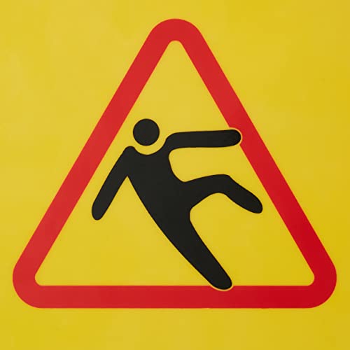 Attenzione: cartello di avvertimento per avvisare i passanti del pavimento appena pulito e scivoloso