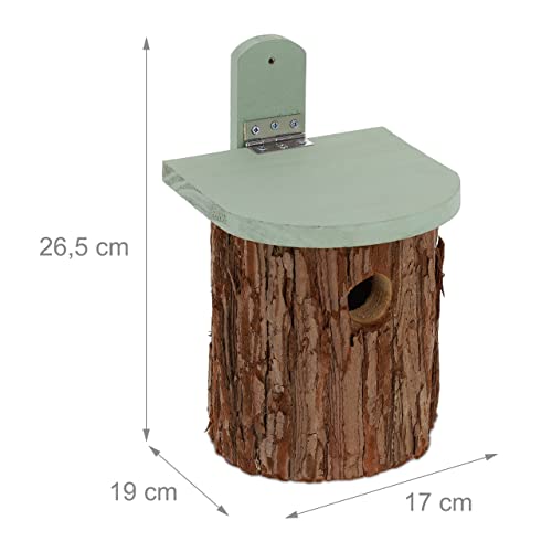 Relaxdays Casetta per Uccelli Decorativa, Legno d'Abete, HLP 26,5x17x19 cm, Appendere, Giardino e Balcone, Natura/Verde